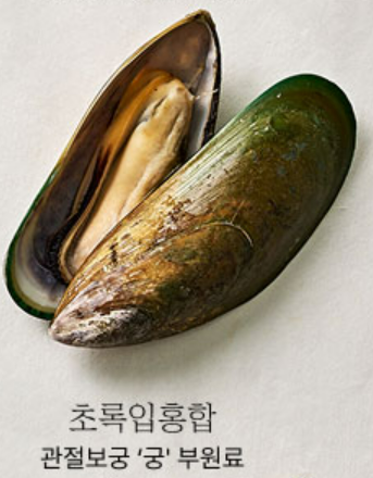 - 초록입홍합: 관절윤활 개선 및 아스타잔틴 성분 통한 항산화 효과