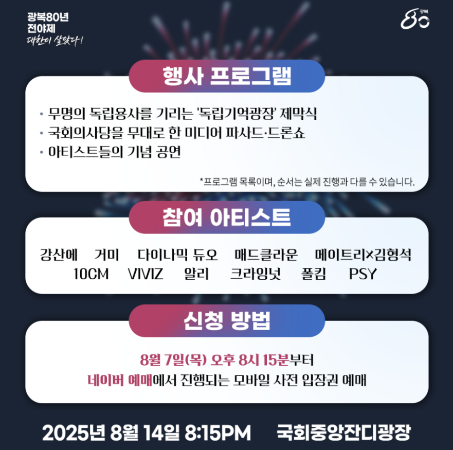 📌 광복절 전야제 신청·예매 요약표