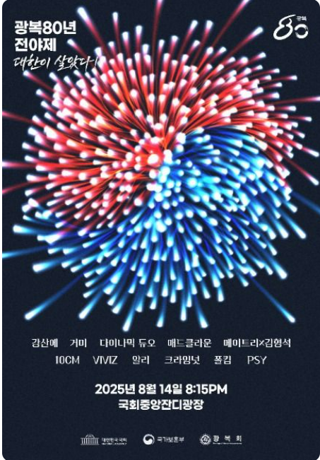 광복 80주년 전야제, 8월 14일 국회·경복궁에서 두 곳 동시 개최 예약하기