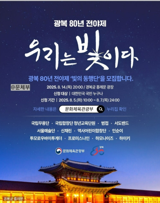 올해는 광복 80주년 광복절 전야제로, 8.15 해방의 기쁨을 기념하는 동시에 미래 세대와 함께하는 새로운 출발을 다짐하는 자리입니다.