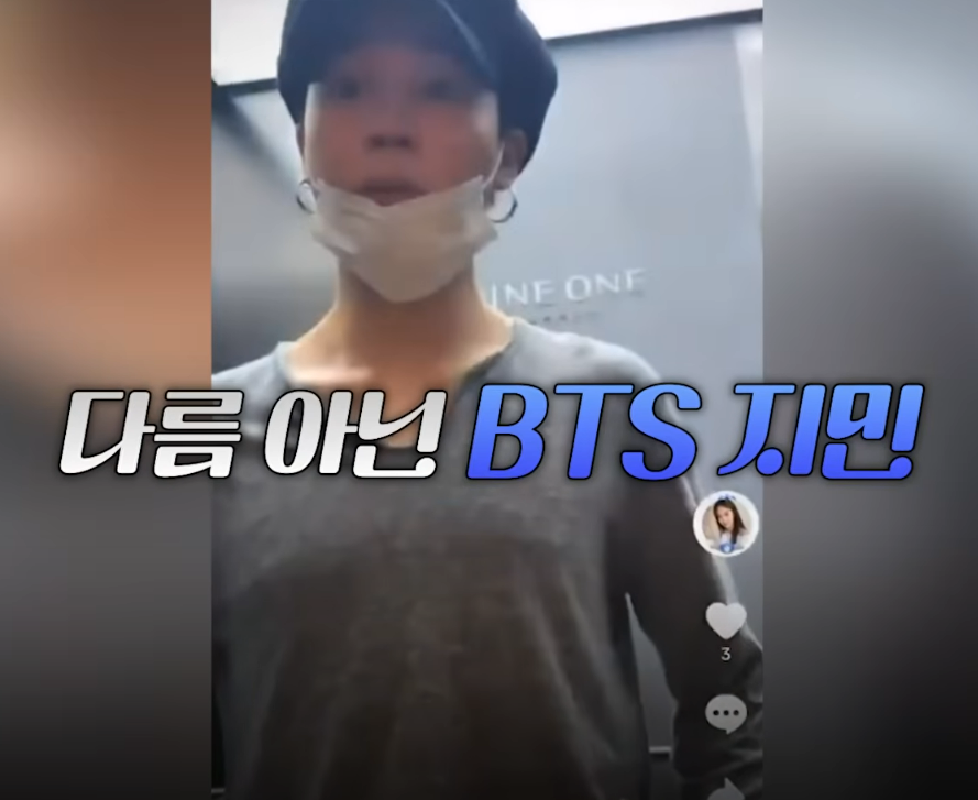 - 해당 영상에서 지민이 엘리베이터에서 내리며 “나 들어오는 거 알았어? 일부러 말 안 하고 온 건데”라는 멘트를 함.