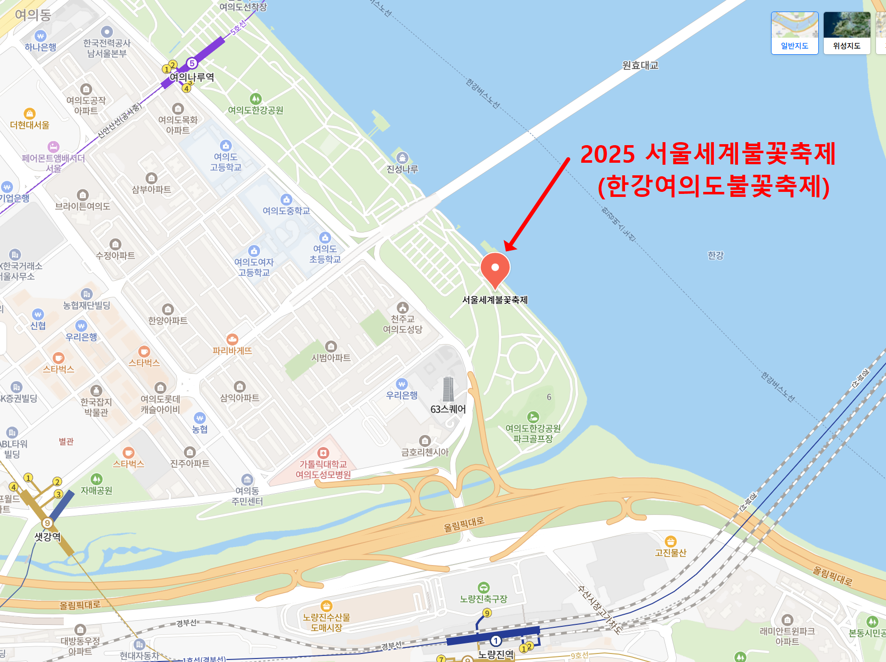 - 대중교통 추천: 차량 진입 통제 / 지하철 이용 시 여의나루역 하차 후 도보 이동