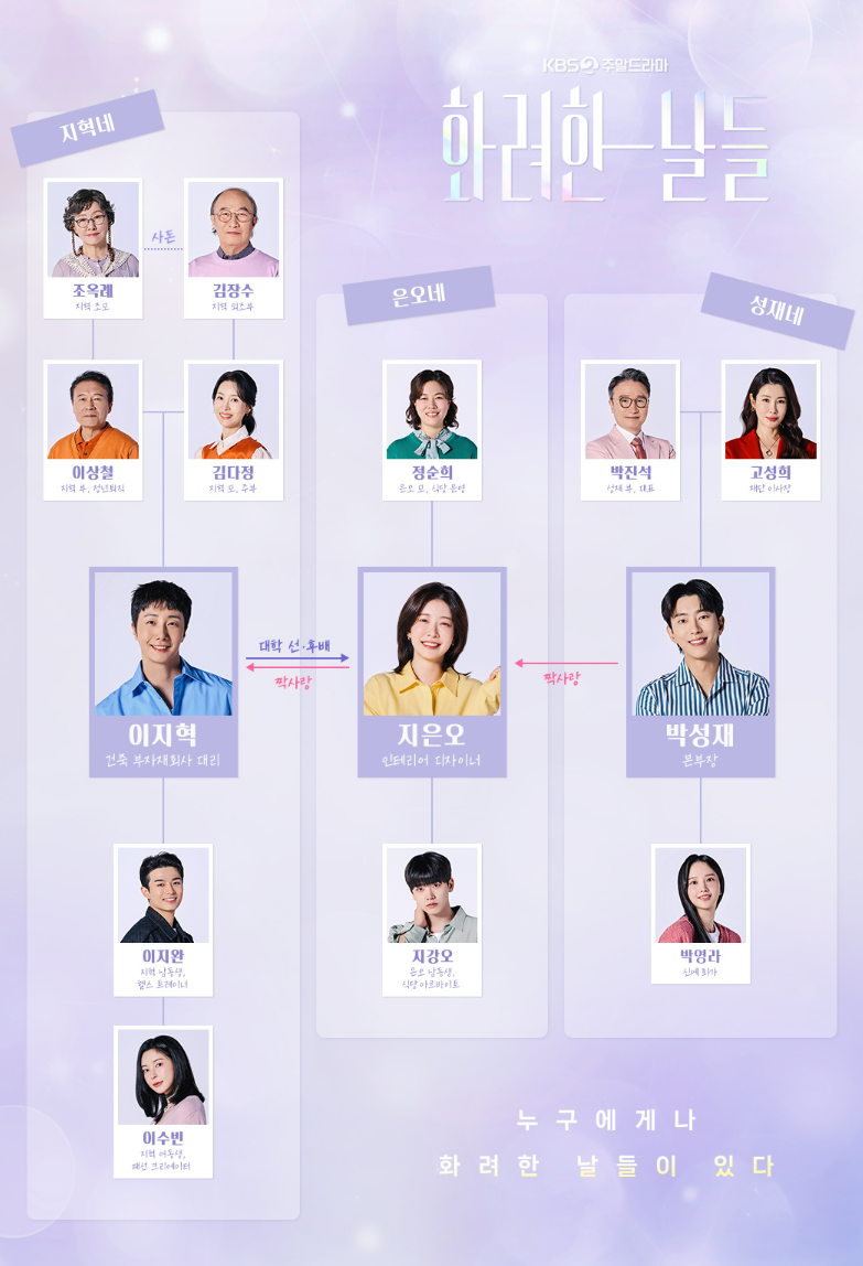 오늘은 여러분이 가장 궁금해하실 ‘화려한날들 등장인물, 출연진, 인물관계도, 작가 정보, 몇부작?’ 모든 것을 한 번에 정리해드립니다.